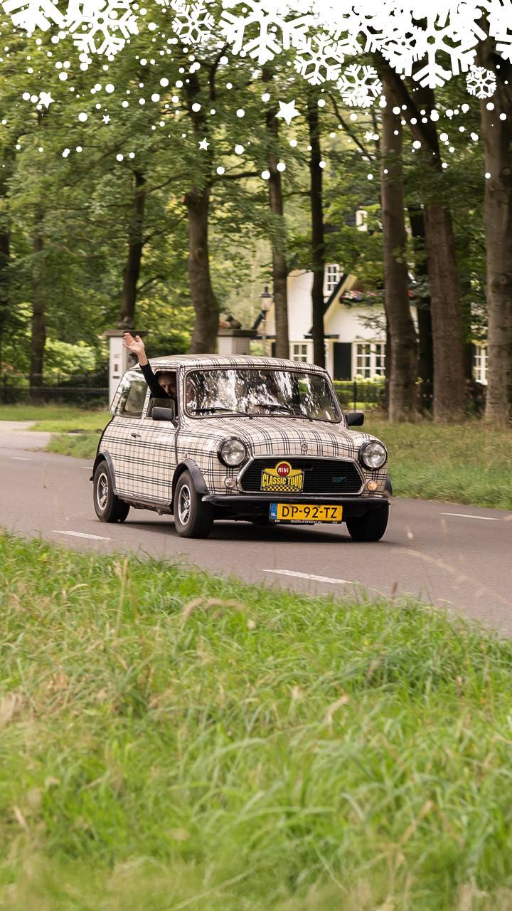 De koplampen schijnen de weg vooruit, de motoren ronken en jullie avontuur gaat van start! In klassieke MINI’s volgen jullie een zorgvuldig samengesteld roadbook, navigeren samen de juiste route door de avond en ontstaan de mooiste momenten. Teamwork, beleving en nostalgie smelten samen. Na de rit warmen jullie verder op tijdens een gezellige winteravond vol sfeer en heerlijk eten.